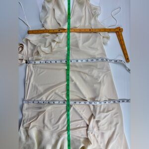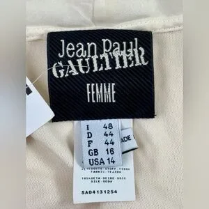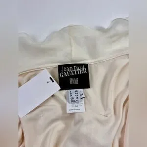 Feminine and flirty, this beautiful Jean Paul Gaultier backless ruffle halter wrap dress in cream silk would make a beautiful alternative wedding dress or for those who love to show off a sexy open back. New with tags please see photos for approximate measurements, tags and info. Dress is tagged Italian size 48 or size 14 but is listed here as a size large.