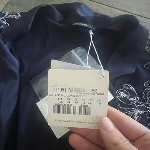 Size medium, never worn. 95% silk 5% elastane. Dark blue.