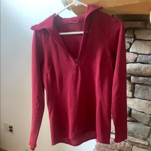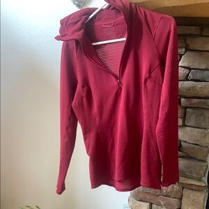 1/4 zip hoody. themal weight capelene base layer burgundy color. Great condition with no piling, stains or flaws.