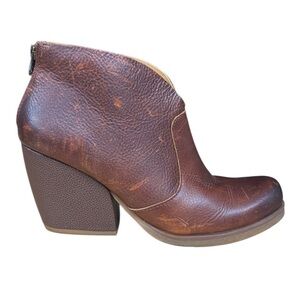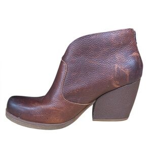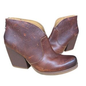 Very Nice Korks Gemini Brown Distressed Leather Zip Up Ankle Boots Booties #Q43906