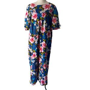 Ui Maikai Vintage Womens Dress Size Large Blue Floral Maxi Pure Cotton