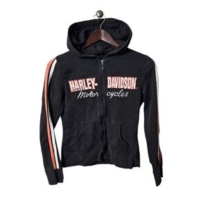 Harley-Davidson "Motorcycles" Full Zip Hoodie Sweatshirt - Black with Orange