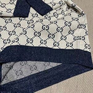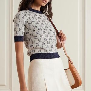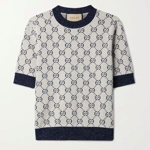 New Gucci 2025 GG monogram metallic Ivory and blue GG lamé jacquard knit top M