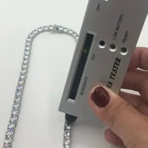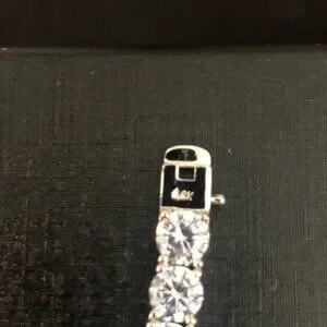 Made of 75 round cut brilliant diamond simulate stones each weighting 1ctw & secured in a 4 prong setting.
