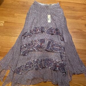 NWT Rebecca Taylor silk bohemian paisley floral tiered ruffle silk skirt Size 0