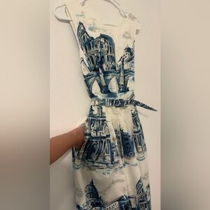 Talbots SCENIC ROME FIT & FLARE DRESS Art To Wear Architecture Preppy Size 4