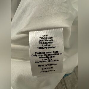 Material: Exterior: 71% Cotton, 26% Viscose, 3% Spandex; Lining: 100% Polyester
