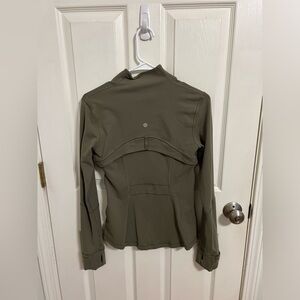 Experience the perfect blend of style and functionality with this green utility jacket from Lululemon Athletica. Crafted from lightweight materials, it features a standing collar and a partial front zipper, making it ideal for everyday wear or light athletic activities. Its fitted silhouette ensures a sleek and modern look. Never worn (ordered the wrong size)!