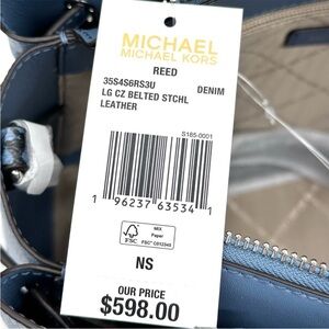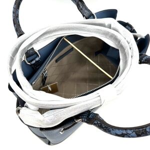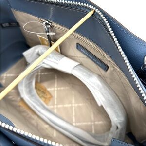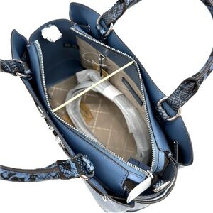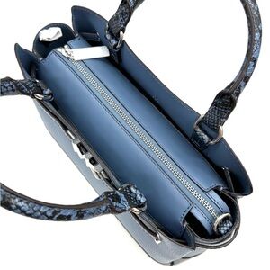 Michael Kors Large Reed Leather Belted Satchel Crossbody Bag Blue Snakeskin