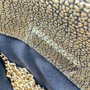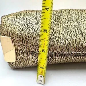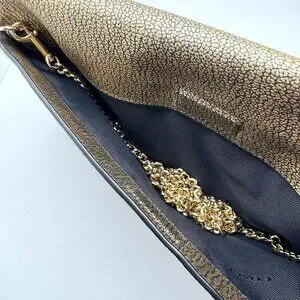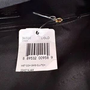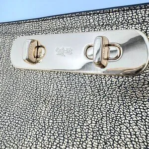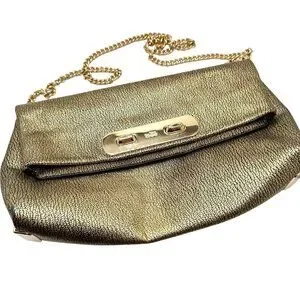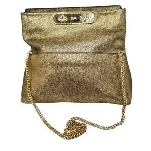 This Coach clutch combines elegance with functionality, featuring metallic pebble leather and a gold-tone chain strap. A versatile accessory for any refined wardrobe.
