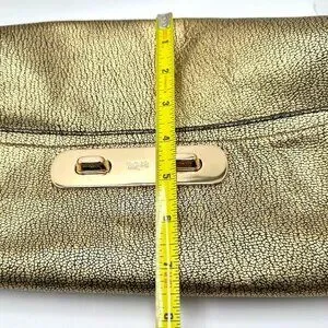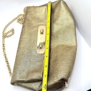 Coach Metallic Gold Pebble Leather Swagger Clutch Crossbody Chain Strap Turnlock