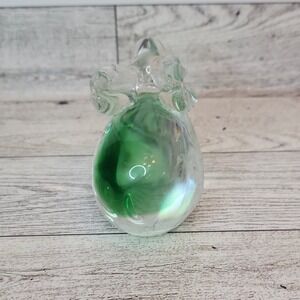 3 Murano Style Art Glass Bunny Swan Squirrel Paperweight Clear Green Vintage