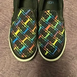 Step out in style with these UGG black sneakers, featuring a unique woven design that adds a touch of texture and visual interest. The slip-on style ensures easy wear, while the low-top silhouette offers a modern, casual look. Perfect for everyday wear, these sneakers combine comfort and fashion effortlessly.