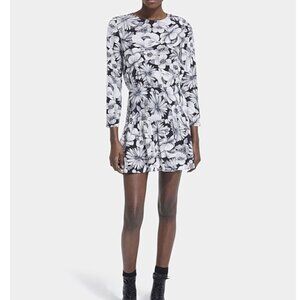 Turn heads with this stunning short dress from The Kooples, crafted from luxurious 100% silk. Featuring an elegant black and white floral pattern, this mini dress perfectly balances sophistication with a touch of playful charm.
