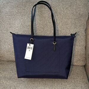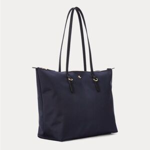 Crafted with durable nylon and designed with sumptuous faux-leather straps, the medium Keaton tote features a spacious silhouette, perfect for carrying the day's essentials. A versatile must-have, it's finished with an "LRL" metal logo on the front for signature style.