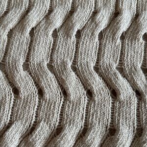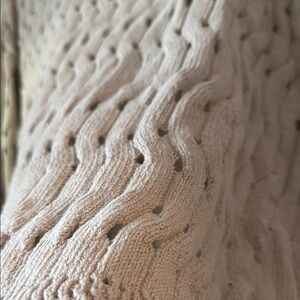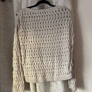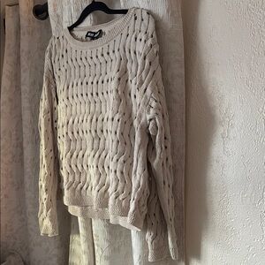 Stylish and soft DKNY sweater with a textured knit pattern. Light beige color and small glitter/shiny finishes adds elegance.