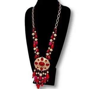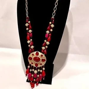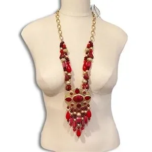CHICO’s 35th Anniversary Merlot Red & Gold Statement Necklace | NWT | MSRP $119