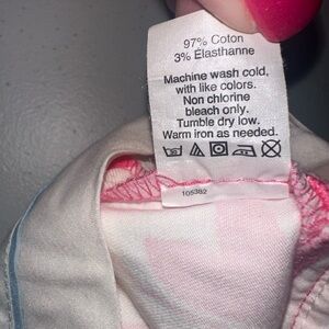 Worn once, J. Crew Women's Chino Shorts in size 4 are perfect for the summer season. With a cute pink and white floral pattern, these 3" stretch shorts feature a button and zipper closure, mid-rise, and a relaxed fit. Made from a comfortable cotton blend fabric with added elastane for stretch, they are ideal for casual beach days or summer outings. The shorts also have a slash pocket for added convenience. Stylish and functional, these shorts are a must-have addition to your summer wardrobe.