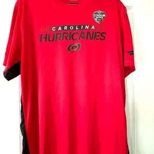 Show your support with this vibrant red Carolina Hurricanes T-shirt. Perfect for fans, this shirt combines comfort and style. Quick dry/jersey material. Size XL.