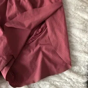 Stylish athletic shorts by lululemon athletica. Features a rose pink color. Perfect for workouts.