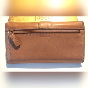 Vtg Fossil Trifold Clutch Long Wallet Checkbook