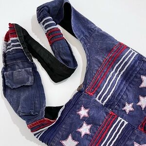 Greater Good Cotton Red White & Blue Hobo Bucket Purse Handbag Patriotic