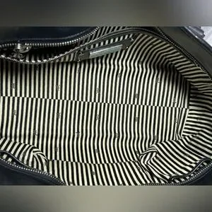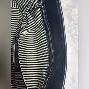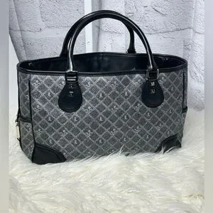 Rare L.A.M.B. Designer Silver Saddle “St Thomas” Tote Bag. Created by Gwen Stefani. Exterior zip top closure. One large interior zippered and two open interior pockets. Silvertone hardware. Genuine leather and pvc. Very good condition with normal use wear. Double handles, some wear. Overall Gorgeous handbag! Authentic & smokefree. Selling as is. Please carefully review all photos & ask any questions prior to purchase. Please zoom in on all photos. Video and extra photos taken of item as it’s being packaged and shipped for security purposes. Thank you💋