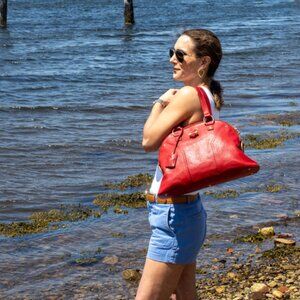 YSL designed this iconic style after Picasso's Muses. Beautiful shade of red called Cardinal. Barely carried with no stains, smells or damage. Like New condition.