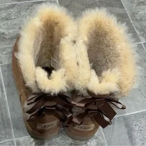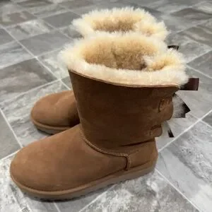 UGG Bailey Bow II Boots Size 7 Brown Chestnut Sheepskin