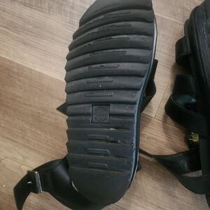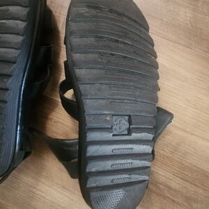 Stylish and durable black womens sandals are perfect for everyday wear. Comfortable and easy to put on, these sandals. Some thinning on one side of the sole, please see pictures.