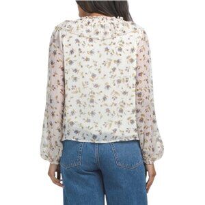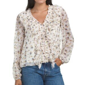 LUSH Ruffle Front Blouse - Ivory Blue
