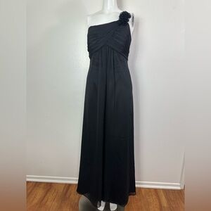NWT Belsoie One Shoulder Floral Black Formal Evening Dress Sz 12