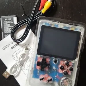 Enjoy 300 +classic gaming, including Donkey Kong with this retro handheld console. Featuring a transparent design TV connectivity and rechargeable battery