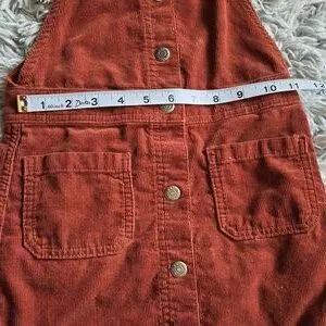 This stylish rust-colored corduroy dress is perfect for your little one's wardrobe. Featuring a button-front design, it's both trendy and comfortable.