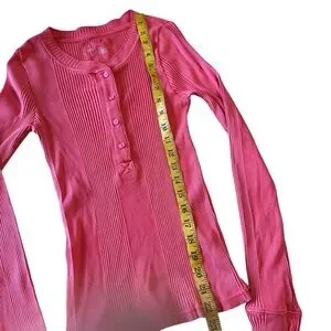 Aerie Road Trip Long Sleeve Henley Coral Ribbed Lounge Comfy Size Medium