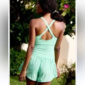 Features: Designed for movement and maternity, it includes breathable, sweat-wicking upper fabric, four-way stretch, a built-in shelf bra, lightweight and water-resistant shorts, and a built-in brief liner.