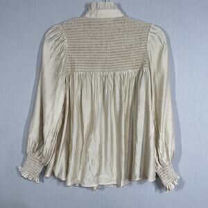 Pomander Place Top Women XS Beige Cottagecore Peasant Boho Prairie Flowy Smocked
