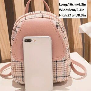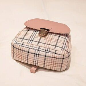 Stylish plaid backpack in a charming pink hue. Perfect for everyday use with a chic design.