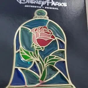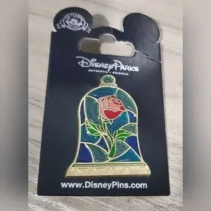 This Disney Pin features a beautiful multicolor (Red/Green/Pink/Blue) stained glass rose with gold trim. It is a perfect addition to any Disney fan's collection, especially fans of Beauty and the Beast. The pin was manufactured in China and is an authentic - original Disney product.