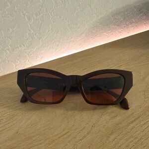 Step into the spotlight with these striking Versace sunglasses, featuring a bold cat-eye shape and a vibrant red hue. The gradient-tinted lenses add a touch of elegance, while the chunky frames embody a modern, edgy aesthetic. Perfect for making a statement, these sunglasses are a must-have accessory for any fashion-forward individual. Box not included. Worn once