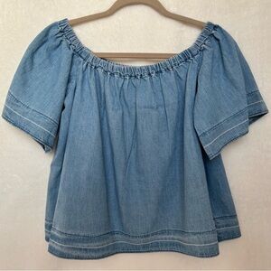 Adriano Goldschmied AG Sylvia Off the Shoulder Chambray Top Sunwashed Sz Medium