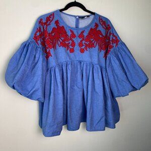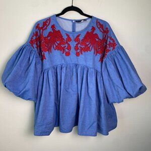 Hemant & Nandita Lianna Embroidered 100% Cotton Blouse Size Small