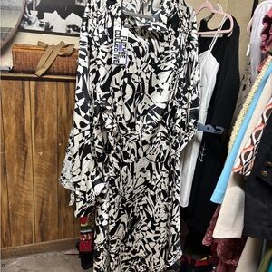 Future Collective Abstract Black and White Patterned Dress XL NWT