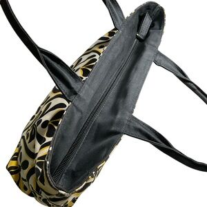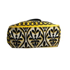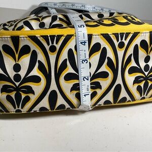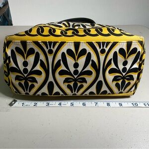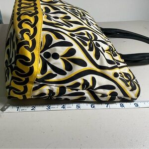 Beautiful, like-new condition Talbots tote purse in geometric floral design of yellow, white, and black. Meaures approximtalety 10"x9"x4.5".