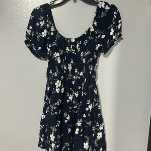 This elegant blue blouse from Hollister features charming puff sleeves and a ruched, smocked bodice for a flattering fit. The short sleeves and flowy design make it a versatile addition to any wardrobe, perfect for both casual and dressy occasions.