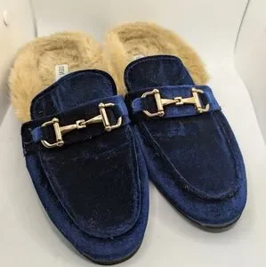 Blue Velvet Sz 7 Men's Steve Madden Loafers with Gold Buckle