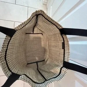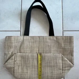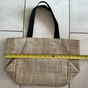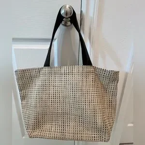 Chiliwich Tan and Black Checkered Tote Bag with Black Handles