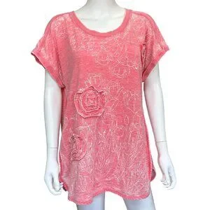 This top features a lightweight cotton blend, floral embellishments, and a relaxed fit. It combines comfort with a touch of feminine elegance.