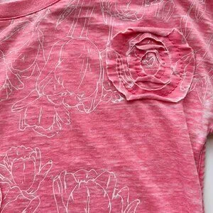Avenue Pink Floral Embellished Short Sleeve Top Cotton Blend Womens Size 14/16