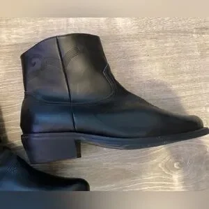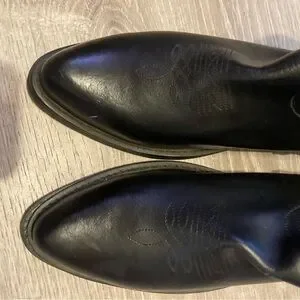 Preowned in really nice condition. Step out in style with these sleek black western ankle boots. Perfect for any occasion, these boots offer both comfort and a classic look. It comes with a device on the inside to keep the boots form when you’re no using them